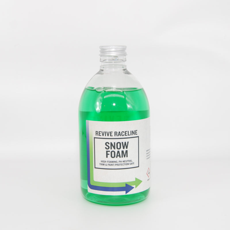 REVIVE's new Raceline Snow Foam. Tougher on grime than our 'classic' range Snow Foam, the Raceline Snow Foam is also pH-neutral, but higher-foaming than the Classic Snow Foam and very effective at breaking down and 'dragging-off' dirt!  An ideal pre-wash which can be used together with the REVIVE Raceline Citrus Pre-wash.